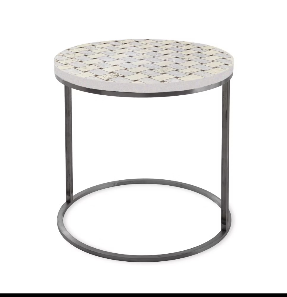 Beyond its artistic surface, the Intrecci table is designed for practicality and adaptability. It is available in a 45 cm diameter, making it compact yet impactful. The base can be customized in three variations—30 cm pedestal, 40 cm pedestal, or no legs—so the table adapts seamlessly to different settings. To further personalize the piece, the metal pedestal is offered in Black, Brass, Iron, or White, creating either contrast or harmony with the woven-inspired design.