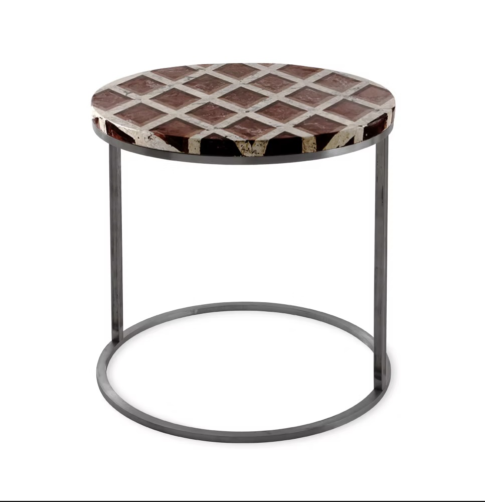 Oltre alla superficie, il tavolo è progettato con proporzioni attente ed eleganza funzionale. È disponibile in diametri da 45 cm o 60 cm, con uno spessore raffinato di 2–3 cm, trovando l’equilibrio tra solidità e grazia. La base può essere personalizzata con diverse altezze—30 cm, 40 cm o senza piedistallo—consentendo al pezzo di adattarsi perfettamente a salotti, lounge o interni boutique. Per completare ogni stile, il piedistallo metallico è disponibile in quattro finiture: Nero, Ottone, Ferro e Bianco, assicurando un’integrazione armoniosa con qualsiasi arredamento.